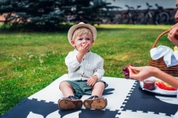 Covorașul este impermeabil, iar băutura vărsată de copil se șterge cu o cârpă și gata – suprafața este deja uscată! MoMi FELI se curăță ușor, de aceea îl poți folosi și în exterior.
