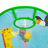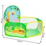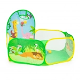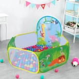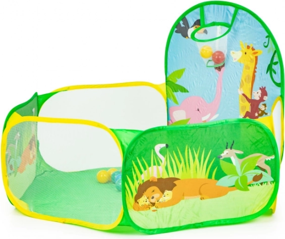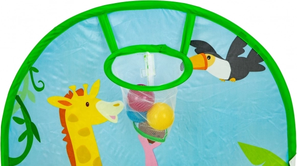 Pachetul include 50 de mingi din plastic (Ø 6 cm), care transformă cortul într-o piscină uscată distractivă. Coșul de aruncat integrat motivează la mișcare, dezvoltă coordonarea și precizia. Baza rezistentă este pregătită pentru joacă în interior și în exterior.