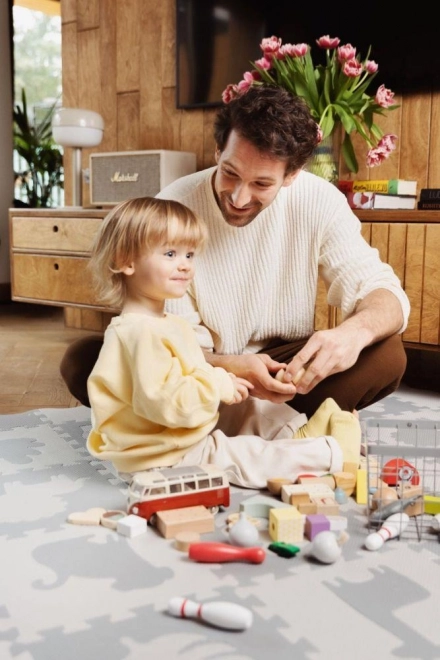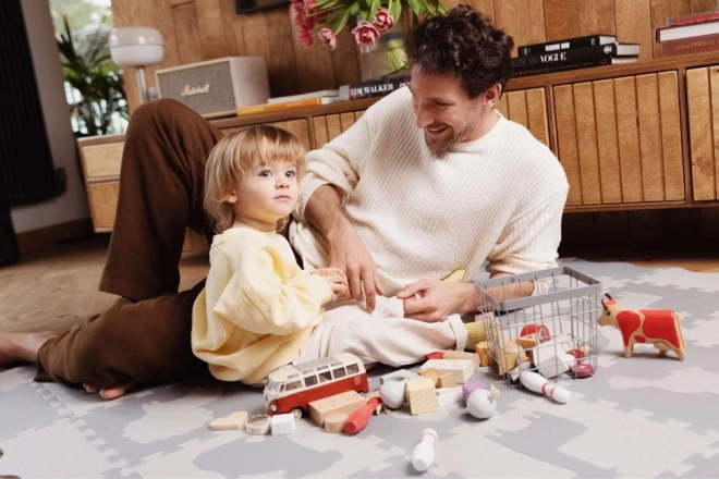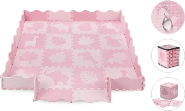 Covorașul oferă multe posibilități de joacă – poate fi folosit ca puzzle clasic și pentru a crea figuri 3D. În plus, elementele 3D pot fi folosite ca jucării separate.