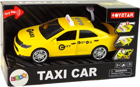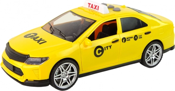 Descoperiți un model detaliat de taxi urban, care arată ca un automobil adevărat. Caroseria galbenă cu inscripții, geamurile fumurii și detaliile realizate cu grijă susțin joaca creativă și scenele realiste din oraș. Jucăria este ideală pentru rulare pe podea și afară, pe suprafețe netede.