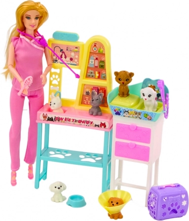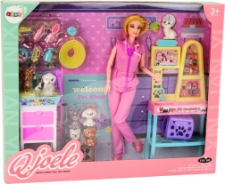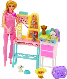 Set de păpuși pentru veterinar cu mobilier și accesorii pentru animale de companie