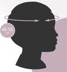 Practicul sistem de prindere cu reglaj 48–55 cm și curelele sub bărbie ajustabile permit adaptarea exactă la capul în creștere al copilului. Respectarea standardului european EN-71 subliniază protecția fiabilă la mersul pe bicicletă, trotinetă, balansor sau role.