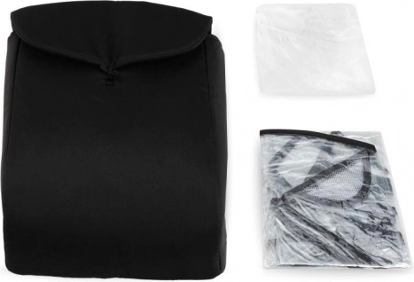 MoMi ESTELLE DAKAR este livrat cu un set de accesorii incredibil de practice pentru fiecare anotimp: husă de ploaie, plasă împotriva insectelor și husă pentru picioare asortată.