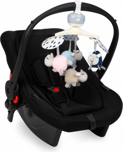 Prinde caruselul deasupra pătuțului cu o clemă sau de cărucior și scaunul auto cu o bandă cu arici. O singură soluție pentru acasă și în călătorii.