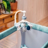 Liniștește bebelușul cu mișcări blânde și melodii. Caruselul muzical MoMi KIKI cu suport universal se prinde ușor de pătuț, cărucior și scaun auto. Oferă 6 melodii liniștitoare, inclusiv zgomot alb, rotație lentă și jucării senzoriale moi în culori sobre, care pot fi detașate și spălate.