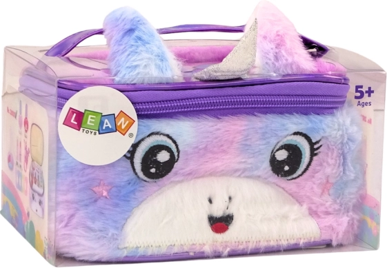 Încântați micile cochete cu acest set cosmetic adorabil într-o gentuță plușată cu motiv unicorn. Înăuntru vor găsi ojă, farduri pentru ochi, rujuri, inel cu luciu și separator pentru degete – totul pentru un joc sigur și creativ. Gentuța moale, în culori pastel, este practică, ușor de transportat și susține imaginația și motricitatea fină.