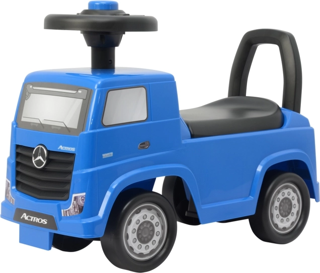 Trotineta fără pedale MERCEDES Actros, în culoare albastră, este ideală pentru copiii care se pot împinge singuri cu piciorușele. Greutatea redusă ușurează manevrarea pentru părinți și copii, iar construcția solidă asigură mers sigur pe suprafețe netede acasă, în curte sau în grădină. Atenția la detalii – jante, faruri și grilă – creează aspectul autentic al unui camion.