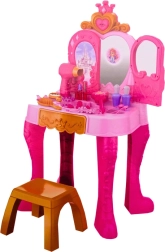Măsuța de toaletă roz pentru micile prințese încântă prin deschiderea magică a oglinzilor la apropierea mâinii datorită senzorului de gesturi. Echiparea bogată și detaliile bine gândite stimulează imaginația și susțin jocul de rol la pieptănat, machiat și crearea coafurilor.