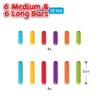Setul include tije în culori diferite, care susțin creativitatea și permit realizarea unor construcții atrăgătoare și pline de culoare.