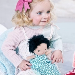Descoperiți bebelușul Ari, o jucărie textilă adorabilă, ideală pentru fetițe mici. Ari are părul închis la culoare și fața este brodată, ceea ce îi conferă durabilitate și siguranță pentru jocurile copiilor. Coșul, pijamaua și păturica sunt reversibile, ceea ce ușurează manipularea și sprijină jocul creativ.