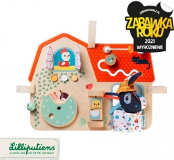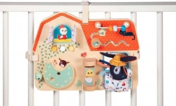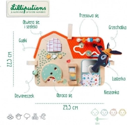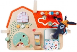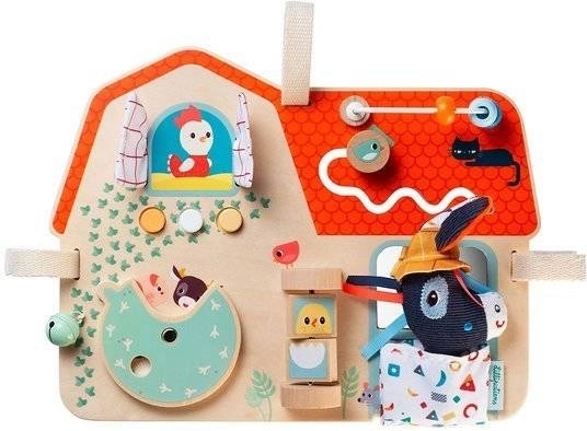 Tablă din lemn Fermă de la Lilliputiens este o jucărie originală și multifuncțională care oferă distracție și învățare pentru micii exploratori. Este echipată cu ecrane zgomotoase, butoane de apăsat, un clopoțel, elemente rotative și o oglindă. Copiii pot descoperi lumea fermei și îmbunătăți coordonarea mâinii și a ochiului. Tabla este decorată cu grafica prietenilor animali de la fermă și are mai multe elemente textile moi.