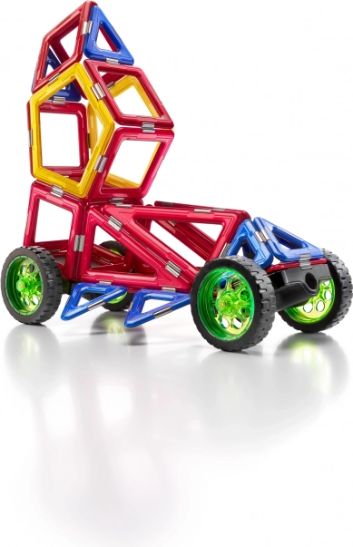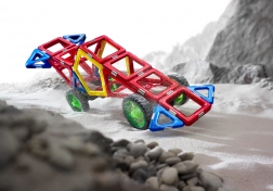 Construiți mașini de curse după instrucțiuni sau după propria imaginație! GEOSMART Roboracer este un set de construcție magnetic dinamic, cu culori vii și o structură robustă, care invită la descoperirea principiilor tehnice de bază. Magneții puternici, cu sistem dublu de siguranță, mențin modelele ferm asamblate și asigură o durată lungă de viață a jucăriei.