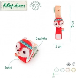 Zornăitoarea moale pentru încheietură LILLIPUTIENS cu personajul vulpița Alice este jucăria ideală pentru bebeluși încă de la naștere. Închidere cu arici, țesătură plăcută din bumbac și construcție ușoară pentru purtare confortabilă pe mânuță sau picioruș. Jucăria zornăie delicat în mișcare și foșnește la atingere, stimulând auzul, văzul și simțul tactil și dezvoltând natural motricitatea fină.