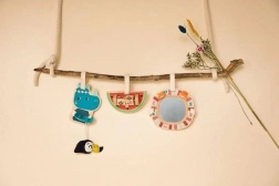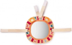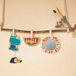 Oglinda cu cadru din lemn și motiv de leu este ideală pentru stimularea vizuală și sprijinirea abilităților de descoperire ale copiilor mici.