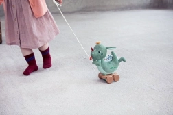 Drak Joe este echipat cu roți din lemn, care susțin dezvoltarea abilităților motorii, și este ideal pentru primii pași ai copiilor.