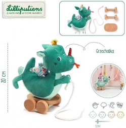 Jucăria include o sfoară moale pentru tras, care este suficient de lungă pentru utilizare confortabilă. Designul distractiv al dragonului cu aripi florale și detalii adorabile va încânta nu doar copiii, ci și părinții lor. Poate fi conectată la alte jucării din aceeași colecție, ceea ce permite extinderea experienței de joacă.
