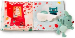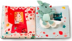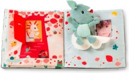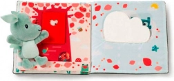 - copertă foșnitoare, elemente rabatabile, texturi variate, fereastră pentru fotografie, mini pluș