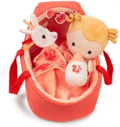Setul susține motricitatea fină, dezvoltarea emoțională și imaginația prin jocul de-a familia. Coșul reversibil cu mânere facilitează transportul, iar păturica reversibilă servește atât ca înveliș, cât și ca saltea de înfășat. Păpușa poate fi spălată la 30 °C în program delicat, pentru a rămâne mereu proaspătă și gata de noi aventuri.