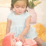 Păpușa textilă drăgălașă bebeluș Lena de la Lilliputiens este ideală pentru alintat, culcat la somn și primele jocuri de rol de îngrijire a bebelușului. Setul include un coș moale, reversibil, cu capotină și mânere, păturică–saltea de înfășat, mini păturică de alint–unicorniță și biberon plușat cu magnet pentru „hrănire” realistă. Păpușa are hăinuțe detașabile, detalii fine și este sigură de la 12 luni.