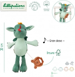 Dragonul din pluș Joe marca Lilliputiens este conceput ca primul prieten perfect pentru copilul tău. Cu înălțimea sa de 32 cm și lira de lemn, servește nu doar ca jucărie, dar și ca un accesoriu muzical care, odată trasă, redă melodia tradițională „Green Sleeves”. Acest dragon muzical are gheare mici, aripi în carouri și un aspect drăguț cu detalii pronunțate care stimulează imaginația copiilor.