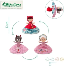 Îndrăgostiți-vă de păpușa care combină trei personaje într-o jucărie - Scufița Roșie, Bunica și Lupul. E suficient doar să întoarceți păpușa și apar diferite personaje din povestea populară. Păpușa este realizată din material moale, care permite un joc manipulatoriu și oferă siguranță datorită finisajului fin.