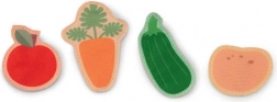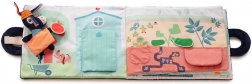 Culegeți mărul, dovlecelul, morcovul și cartoful, ridicați oul, laptele, lâna și mierea. Elementele detașabile cu scai și buzunarele ascunse invită la explorare și antrenează motricitatea fină.