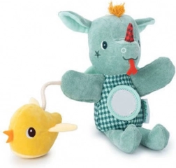 Păpușa de mână activă, micul dragon verde cu corn și limbă roșie, este grozavă pentru spus povești, citit și liniștire înainte de somn. Datorită orificiilor din lăbuțe o veți anima cu ușurință și veți implica copilul în joacă. Elementele integrate – zornăitor în cap, oglindă pe burtică și puișor foșnitor – oferă stimulare senzorială și distracție.