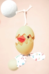 Datorită cojii din silicon, oul este plăcut la atingere și se curăță ușor prin simpla ștergere. Bucla practică permite agățare rapidă oriunde ai nevoie. Combinația de textile și silicon susține dezvoltarea senzorială și motricitatea fină.