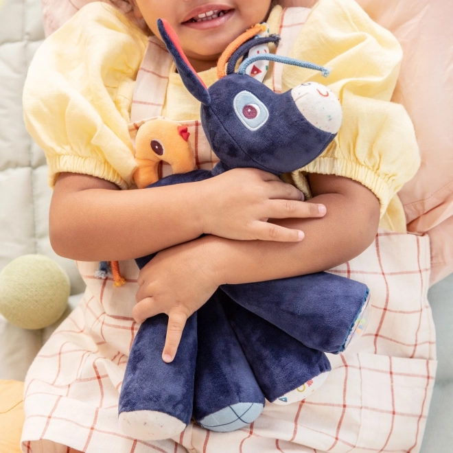 Faceți cunoștință cu prietenul de pluș care distrează și liniștește. Măgărușul IGNAC este foarte moale, stimulant cromatic și, la apăsarea diferitelor părți ale corpului, redă cinci sunete, inclusiv răget autentic. Dezvoltă auzul, motricitatea fină și curiozitatea.