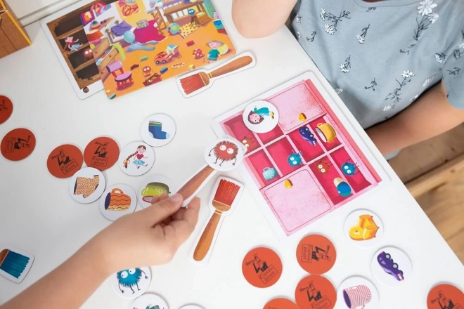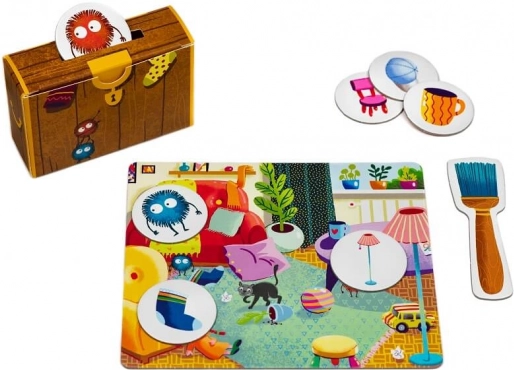 Acest joc insuflă o nouă viață curățeniei! Jucătorii încearcă să oprească bilele de praf năzdrăvane înainte să ajungă la obiectele lor precum șosete, păpuși sau mașini. Copiii învață să sorteze obiectele după tip, mărime sau culoare, ceea ce stimulează memoria, concentrarea și observația.