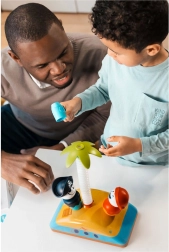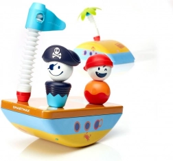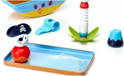 Distracție piraterească: Acest set colorat conține toate componentele necesare pentru a crea propria echipă de pirați. Copiii pot lua jocul oriunde datorită cutiei metalice practice în formă de navă, care servește și ca suprafață de joacă.