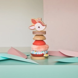 Jucărie originală de stivuire Lilliputiens cu tematica Căprioara Stella, îi va încânta pe copiii de la 12 luni: combină lemnul și textilele, dezvoltă motricitatea fină și creativitatea și, datorită bazei stabile, se asamblează ușor. Conține 4 piese din lemn și 2 piese textile; dimensiuni 8 × 8 × 18,8 cm. Părțile textile pot fi spălate la 30 °C (ciclu delicat).