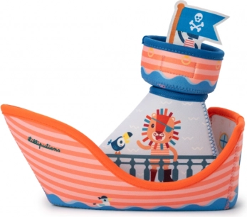 Pornește într-o călătorie imaginară alături de curajosul leu Jack și echipajul său. Barca de pirați, colorată și moale din neopren, este concepută pentru a fi ușor de ținut de mânuțele mici și oferă distracție sigură în cadă sau la piscină. Partea superioară a bărcii cu măgărușul Ignace se detașează ușor – copiii obțin astfel o ambarcațiune mai mare și una mai mică pentru jocuri variate și dezvoltarea imaginației.
