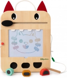 Tăblița este realizată din lemn și placaj și oferă o construcție durabilă pentru joaca zilnică. Dacă desenul nu iese, este suficient să folosești „nasul” de șters al lui Ludovic, iar suprafața este din nou gata pentru idei noi. Cardurile de joc sunt depozitate pe partea din spate, astfel încât ai totul frumos organizat.