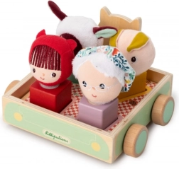 Descoperiți amuzantul cărucior de tras cu personaje de la Lilliputiens, în care lupul Ludovic o plimbă pe bunicuța, Scufița Roșie, purcelușul și oița. Această jucărie isteață combină cărucior de tras, sortator și recunoașterea formelor. Datorită scaiului, căpșoarele personajelor se prind ușor de formele din lemn, ceea ce dezvoltă excelent motricitatea fină, coordonarea mână–ochi și imaginația copiilor.