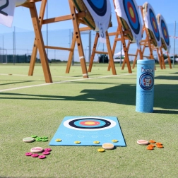 Skok! Tir cu arcul este un joc de familie captivant, în care jucătorii „lansează” jetoane din lemn către țintă și concurează pentru cel mai mare scor. Alegeți culoarea jetoanelor, stabiliți linia de start – mai aproape pentru precizie sau mai departe pentru o provocare mai mare – și demonstrați-vă îndemânarea.