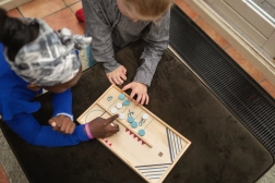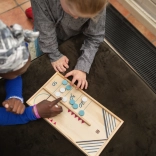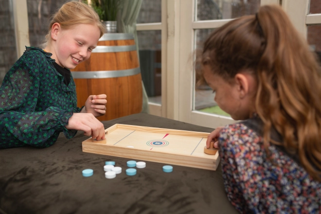 Hocheiul de masă și jocul matematic pentru copii oferă o porție dublă de distracție! În prima parte a jocului, doi jucători trebuie să-și trimită jetoanele în câmpul țintă. În a doua parte, se întrec la hochei de masă până când un jucător ajunge la șapte goluri. Ambele jocuri sunt concepute pentru a susține coordonarea mână-ochi și a dezvolta abilitățile numerice.