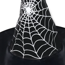 Oferă costumului de vrăjitoare sau magician pentru copii acel plus de stil. Pălăria neagră cu motivul proeminent de pânză de păianjen arată spectaculos atât în fotografii, cât și pe ringul de dans. O alegere excelentă pentru petreceri de Halloween, carnavaluri școlare și baluri mascate.
