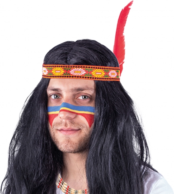 Această perucă de carnaval pentru bărbați, cu stil aparte, este alegerea ideală pentru oricine dorește să strălucească la un eveniment tematic. Este dotată cu o bentiță stilată cu pană, care oferă un aspect autentic de inspirație indiană. Potrivită pentru vârste de la 15 ani în sus.