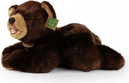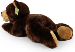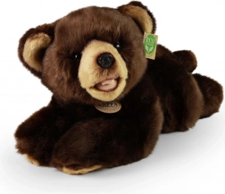 Ursulețul de pluș drăgălaș, culcat, cu dimensiunea de 32 cm, încântă prin suprafața sa catifelată și execuția de calitate. Datorită umpluturii eco-friendly din sticle PET reciclate este sigur chiar și pentru cei mai mici, foarte moale pentru îmbrățișat și în același timp prietenos cu natura. Aspectul realist și lucrul manual îl fac un cadou ideal pentru copii sau o decorațiune pentru camera copilului.