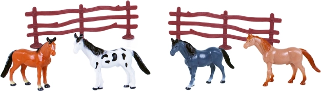 Descoperă farmecul lumii cailor cu acest set distractiv pentru copii. Patru căluți cu forme diferite și două piese de gard stimulează jocul creativ, crearea propriilor scene de fermă și dezvoltă relația cu natura și animalele. Datorită dimensiunilor compacte, setul este ideal atât pentru călătorii, cât și pentru acasă.
