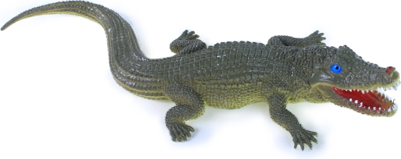 Textura detaliată a solzilor, forma corpului și gura proeminentă cu dinți fac din crocodil o jucărie atrăgătoare și verosimilă.