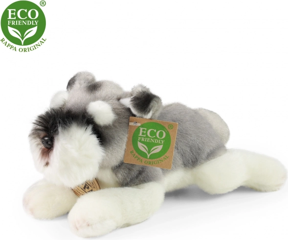 Îmbogățește-ți colecția de jucării de pluș cu acest câine de pluș culcat, care nu este doar adorabil, dar și prietenos cu planeta noastră. Datorită sticlelor PET reciclate folosite ca umplutură, acest câine îndeplinește toate standardele ecologice moderne. Alege dintre diferitele rase în funcție de preferințele tale.