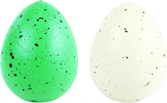 Fiecare ou are un design unic verde cu pete negre și ascunde un dinozaur de diferite culori.