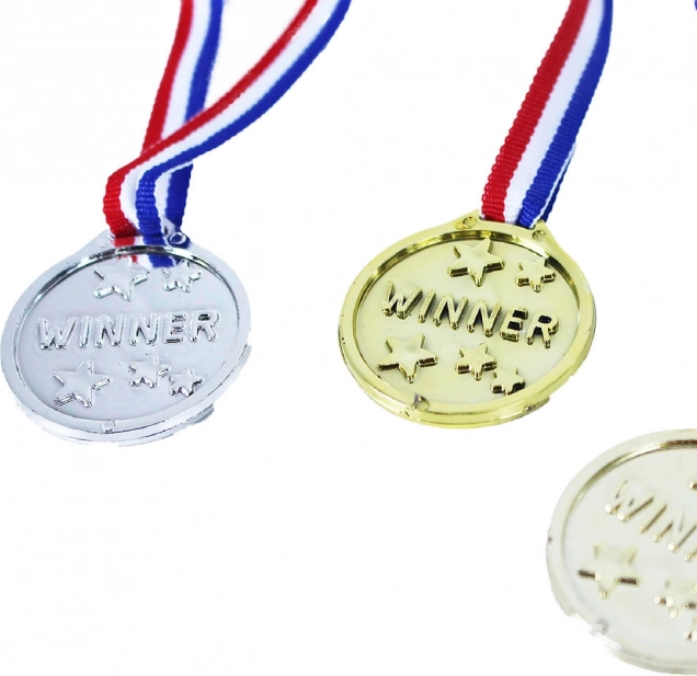 Răsplătește-ți prietenii cu medalii adevărate! Setul conține medalie de aur, medalie de argint și medalie de bronz, toate pe un șnur practic.