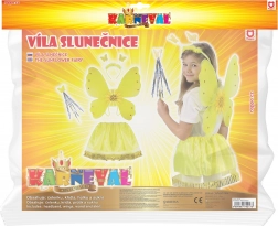 Costumul de floarea-soarelui, într-un galben strălucitor, atrage privirile de la prima vedere – detalii sclipitoare, pietricele fine și floarea din centrul aripilor îi conferă un aspect fermecător. Fustița pufoasă este tivită în partea de jos cu paiete aurii, astfel încât strălucește frumos la fiecare mișcare.