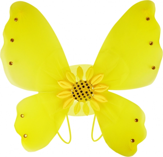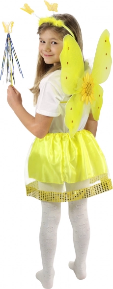 - Aripi cu floarea-soarelui și pietricele; fustiță pufoasă cu paiete aurii; bentiță cu fluturași metalizați; baghetă magică
