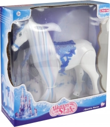 Vă prezentăm calul electric din colecția Regatul Iernii, care este tovarășul perfect pentru micii iubitori de povești și fantezie. Acest cal magic oferă următoarele funcții: