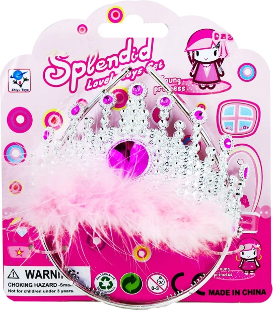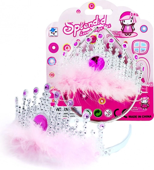 Coroniță elegantă pentru toate micile prințese, decorată cu elemente roz delicate și pene. Un accesoriu grozav pentru orice costum, care va captiva orice fetiță.