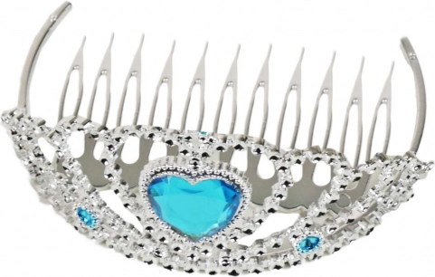 Această coroană adaugă un aspect regal datorită bijuteriei marcante în formă de inimă albastră și pietrelor mici și clare.